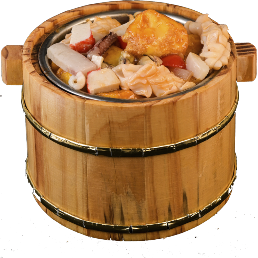 Тофу, мидии, кальмар, креветки, крабовые палочки, специи